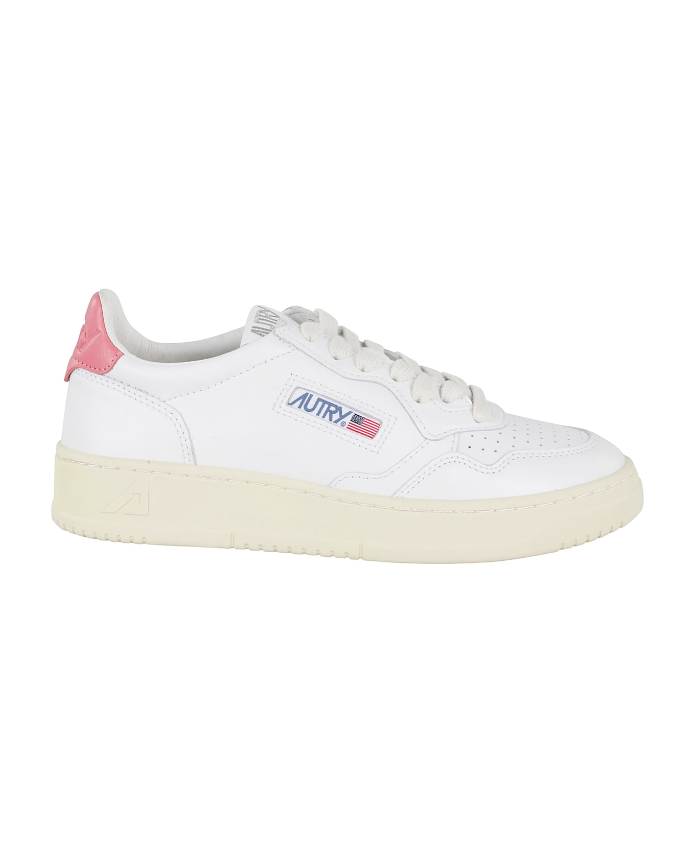 Medalist Low Woman sneakers - Autry - White color - Leather upper - Round toe with holes - Cotton lace-up closure - Fuchsia heel with engraved logo - Side logo - Rubber sole