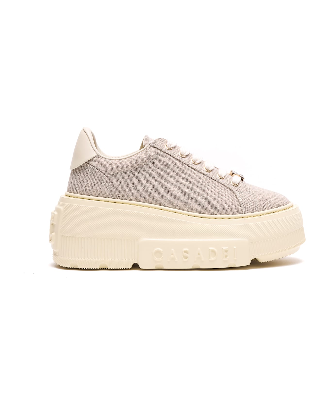 Casadei beige sneakers, laces closure, round toe, platform, logo Composition: 100% Fabric Upper, Rubber Sole