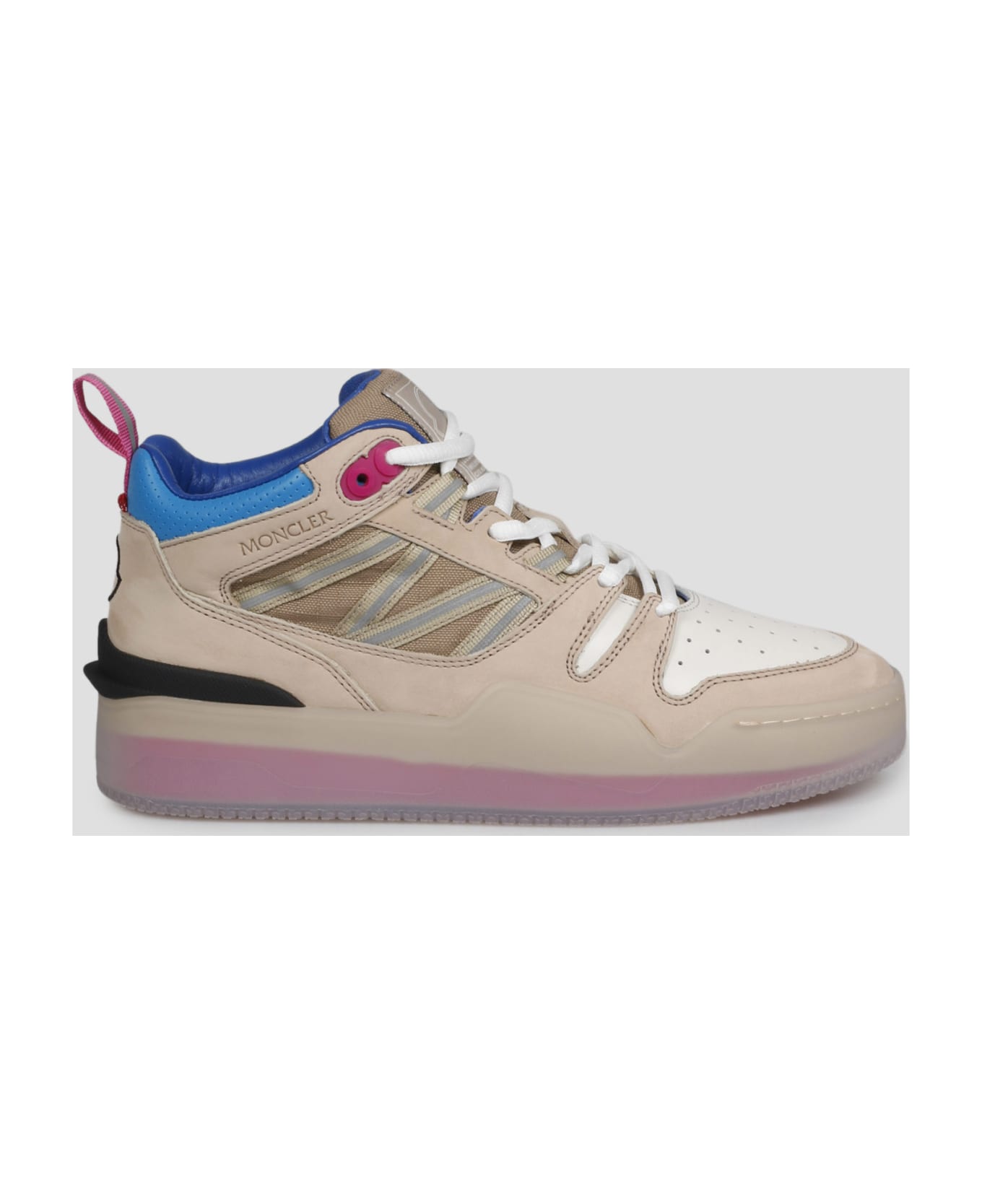 Moncler Pivot high top sneaker, in nubuck and leather with reflective ripstop straps. - SS23 - Basket inspired - Round tip - Lace up - Logo label embroidered on the front tongue - Logo outline embroidered on the heel - EVA midsole - Rubber sole - Made in Italy - 100% Polyester
