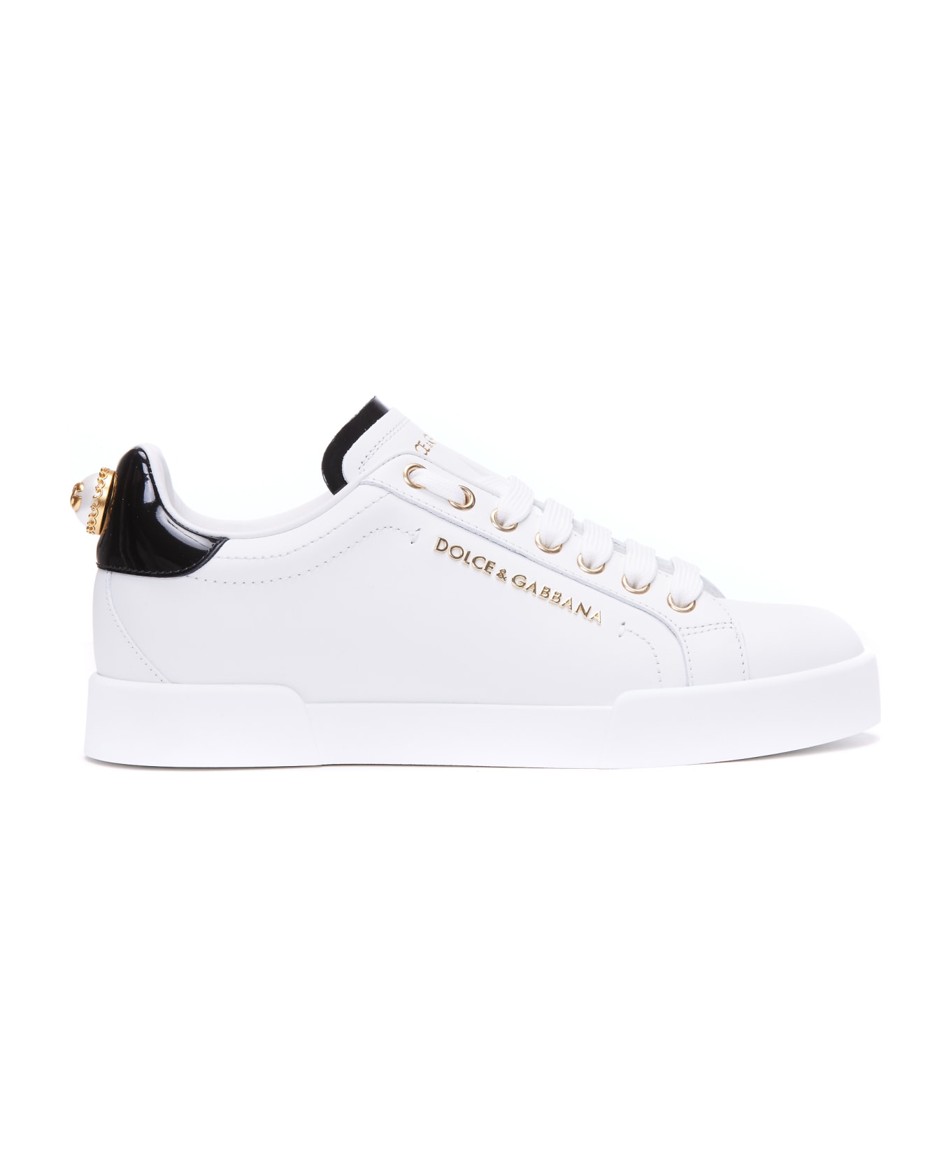 Dolce&Gabbana white Portofino sneakers, leather upper, laces closure, lateral and back jeweled DG logo, round toe Composition: 100% Leather/rubber Sole