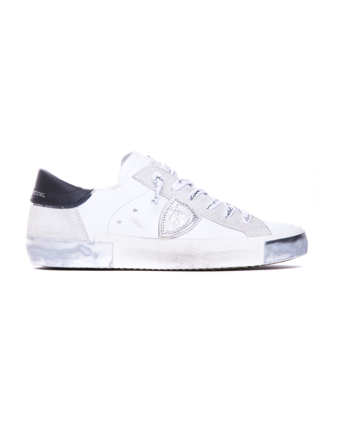 Philippe Model Prsx low white sneakers, lace closure, logo on side and on tongue, leather upper, rubber sole