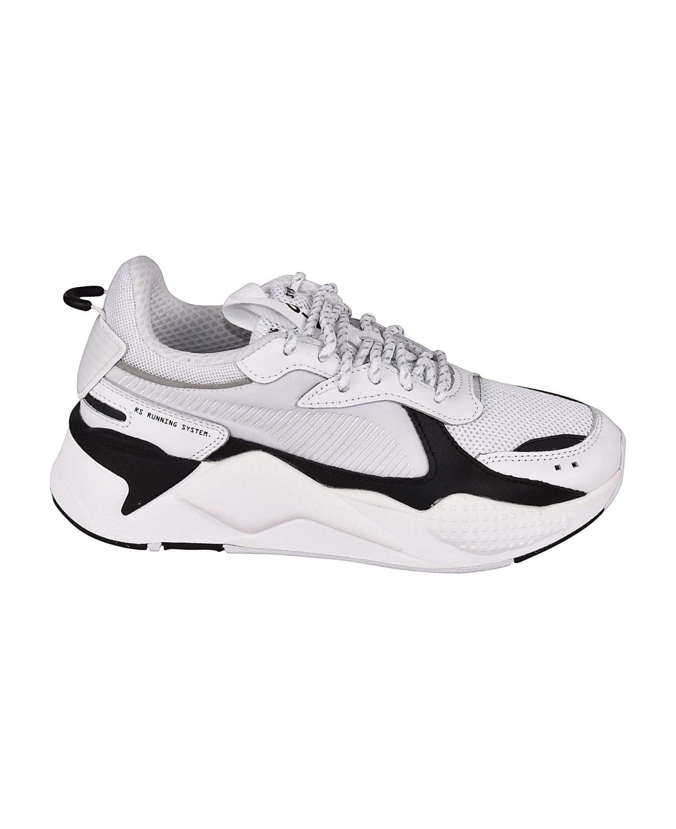 RS-X Core Sneakers from Puma: White/Black RS-X Core Sneakers with almond toe, front lace-up fastening, logo patch on tongue, pull-tab on rear, branded insole and flat rubber sole.