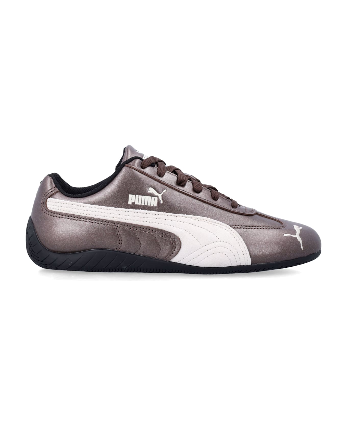 The Puma Speedcat Metallic Sneakers Revive The Iconic Ultra-slim Racing Silhouette That Has Shaped Streetwear For Over Two Decades. Designed Originally As A Precision Driving Shoe, This Updated Metallic-look Version Blends Motorsport Heritage With Modern Urban Style. The Rounded Toe, Lace Fastening And Flat Sole Complete Its Timeless Appeal. Metallic-look Leather Upper