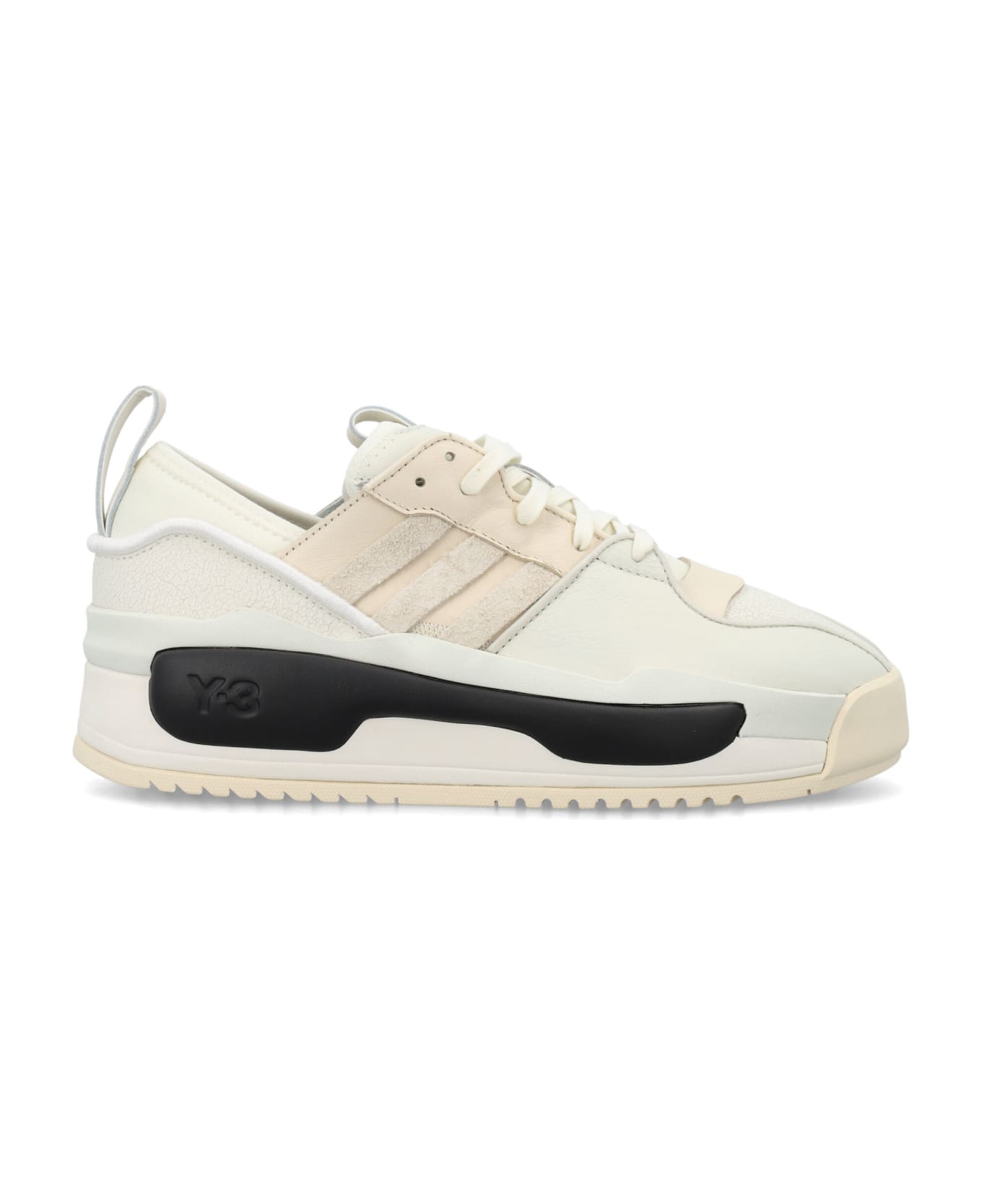 Rivalry Sneakers By Y-3. Featuring: Low-top Lace-up Fastening Engraved Logo At Tongue Pointed Toe Leather Upper Three Suede Bands At Side Contrasting Panels At Side Pull Tab Rubber Sole