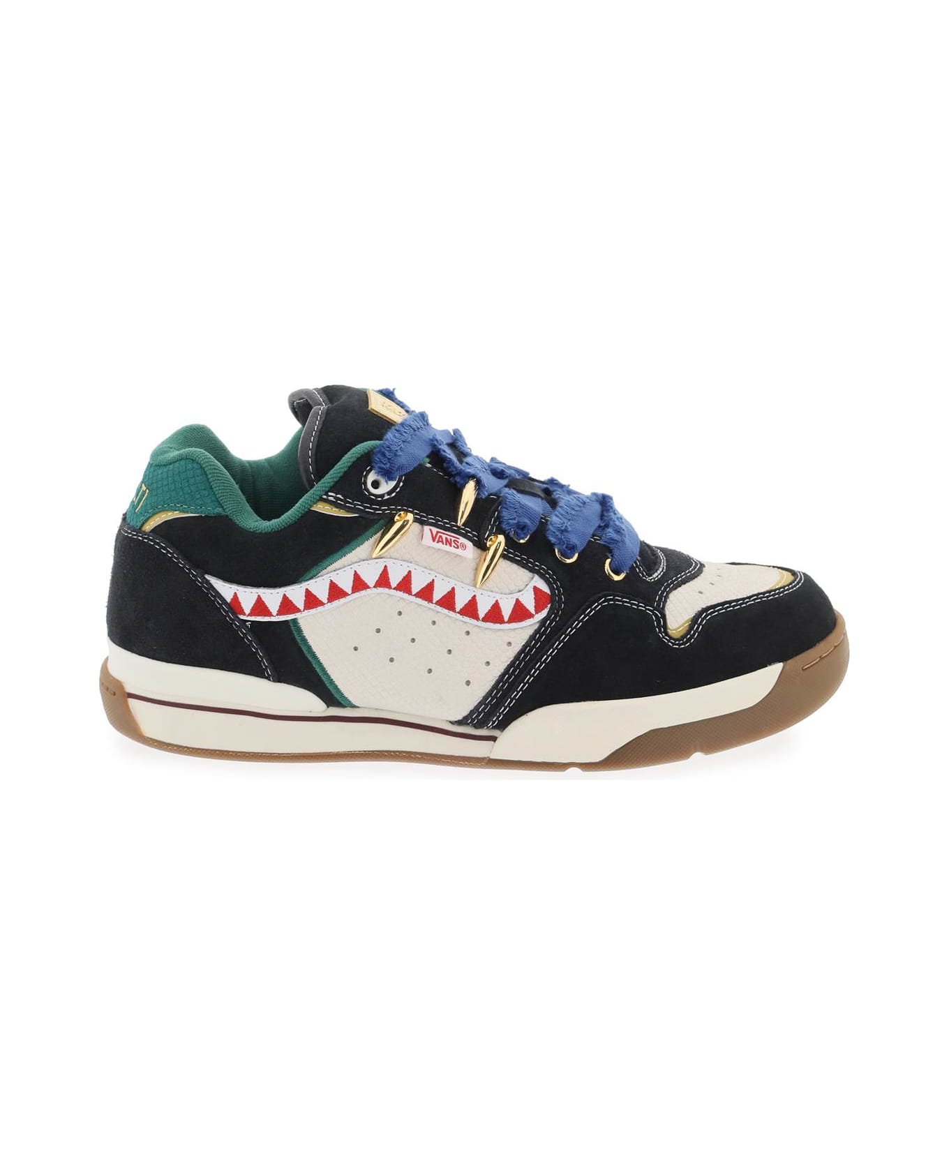 The Vans Rowley XLT sneakers are made of embossed faux leather and suede, decorated with iconic Sidestripe side bands with embroidered pattern, golden metal hooks and fringed flat laces. Perforated toe, laminated logo patch on the tongue, impressed lettering on the spoiler, fabric interior with removable faux leather insole and rubber sole.