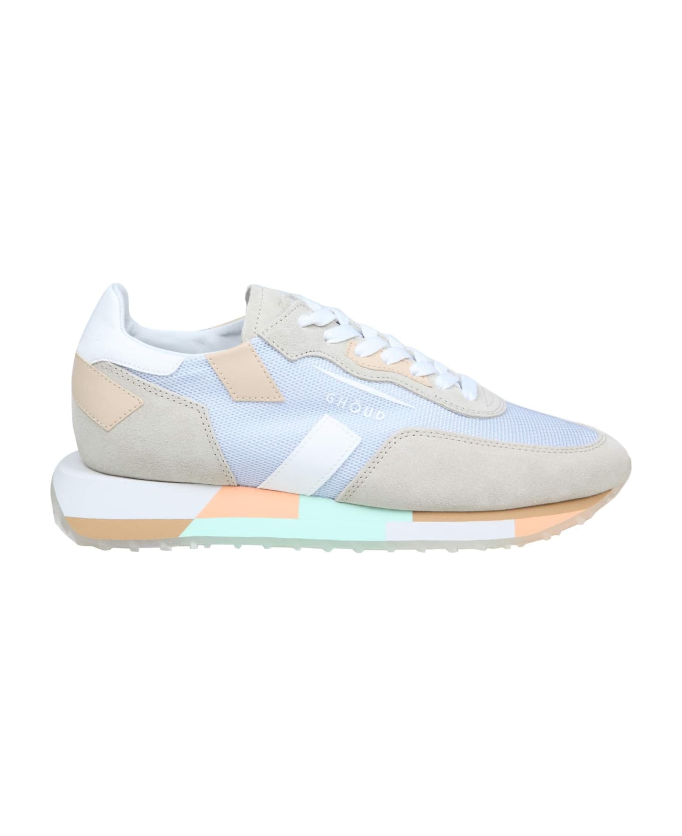 Suede sneakers colorful details lilac color with contrasting details closure with laces iconic logo on the outer side round tip rubber sole logo on the heel lined interior external composition suede leather and synthetic fiber sole height 1. 5cm made in italy