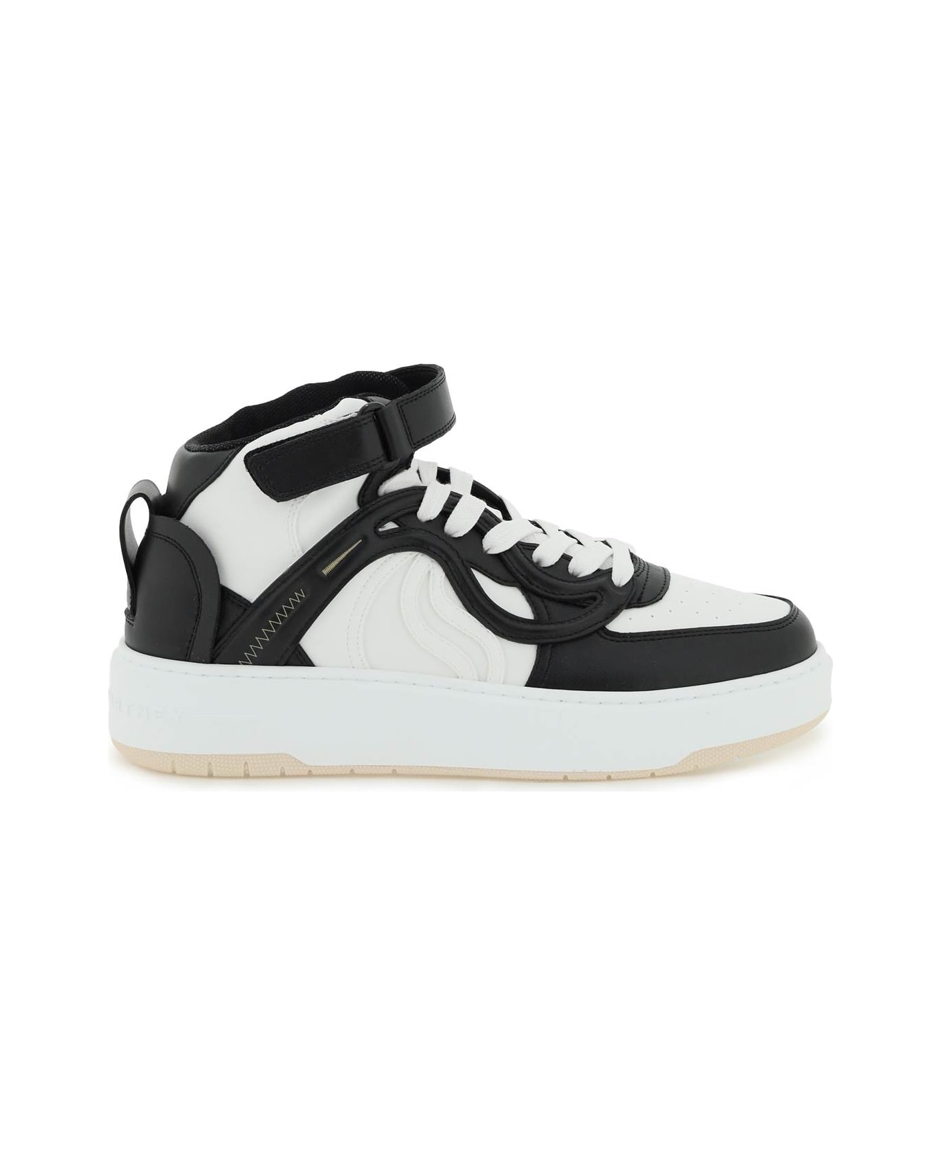 S-Wave top high sneakers by Stella McCartney made of faux leather with contrasting inserts. Lace-up closure, contrasting logo on ton