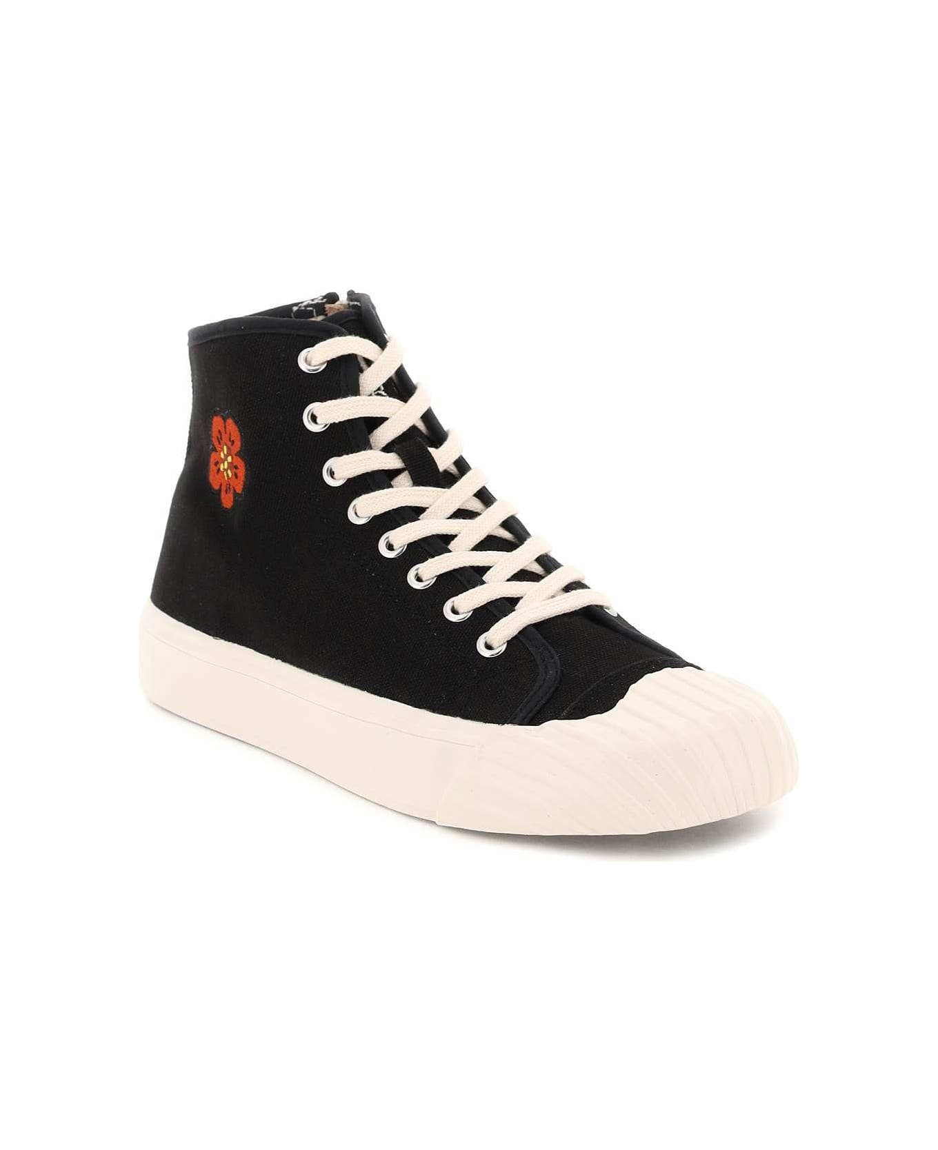 Kenzo hi-top sneakers crafted in cotton canvas with 'BOKE FLOWER' embroidery on the side. Ribber rubber toe cap, lace-up closure with silver-finished metal eyelets and side zip closure. Fabric lining and removable insole, rubber sole with logo on the back.