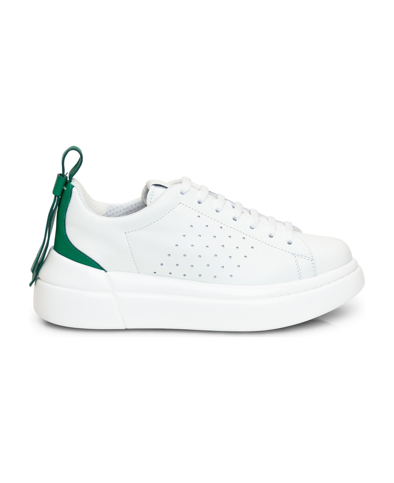 White low sneaker. Closure with laces. Perforated on the side. Logo on tongue and heel. Composition: Outside:, 100% Leather Lining:, 100% Fabric Sole:, 100% Rubber