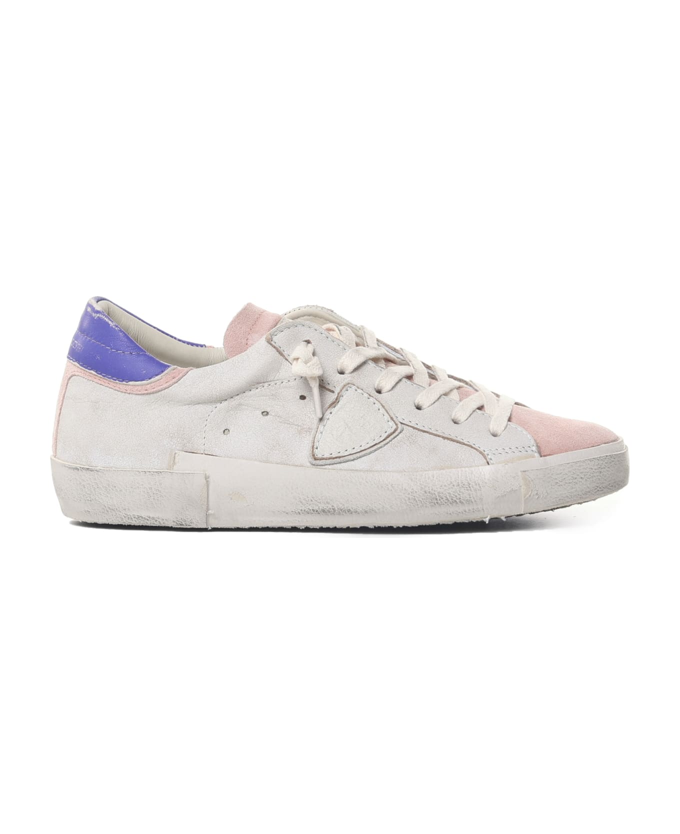 Vintage mixage_blanc rose Sneakers In Pelle from Philippe Model -Worn effect sneakers -Contrasting tongue -Front closure with laces -Rubber sole -Round toe -Made in Italy -Colour: White/Pink -100% Calfskin