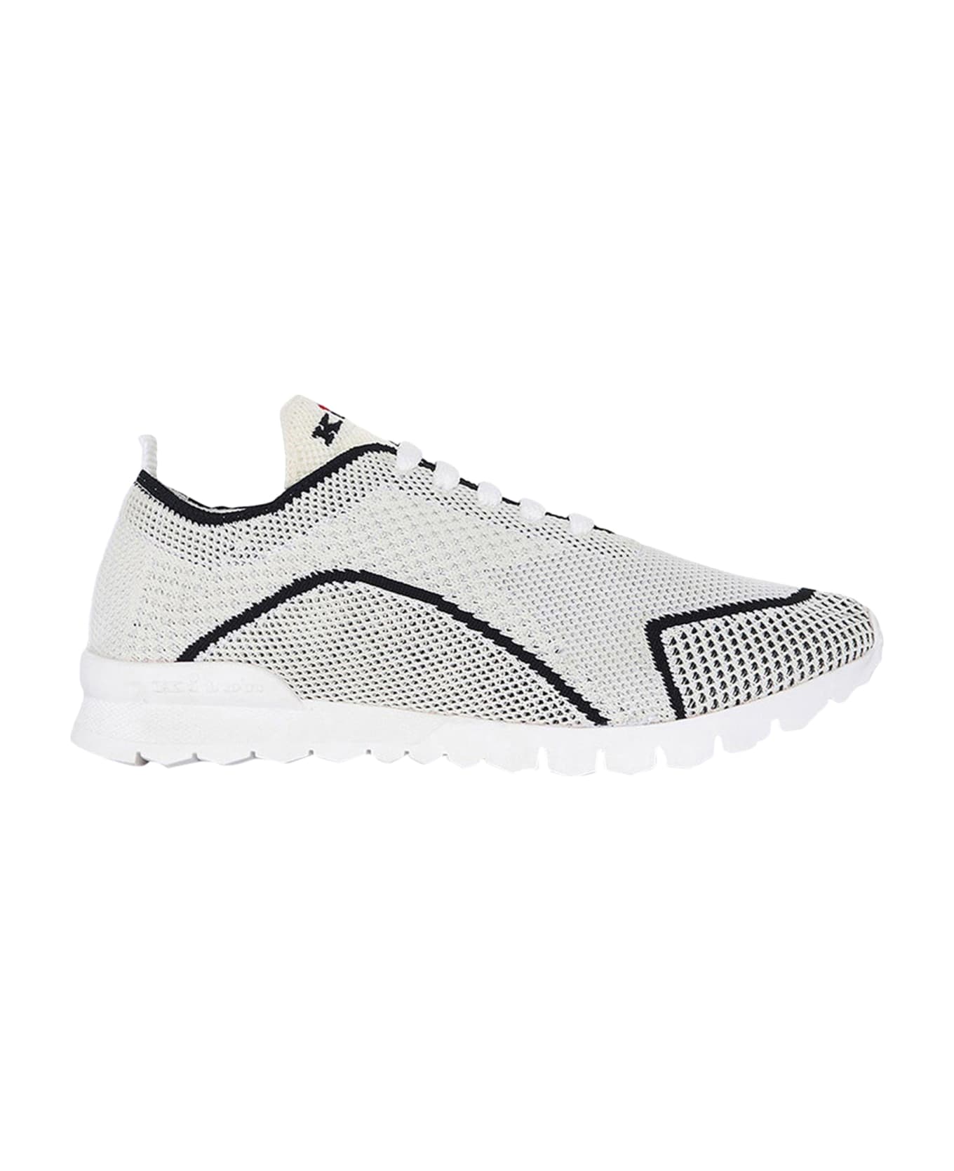 These trainers feature a one-piece upper; the structure is in Kiton knit fabric, rendered unique by the graphic juxtaposition of different stitches. The white sole is flexible and extra-light under foot, and is combined with an elasticated tongue for added comfort. Embroidered Kiton logo; stretch mesh laces which feature the iconic red aglet. All Kiton products are made by expert tailors in our atelier in Naples. The Kiton mission is to innovate in terms of aesthetics and technique, while always keeping tradition in mind. . The benefit of hand-made products lies in their superior comfort: in this case, a particularly soft and ergonomic insole. Dry clean to keep them looking their best.