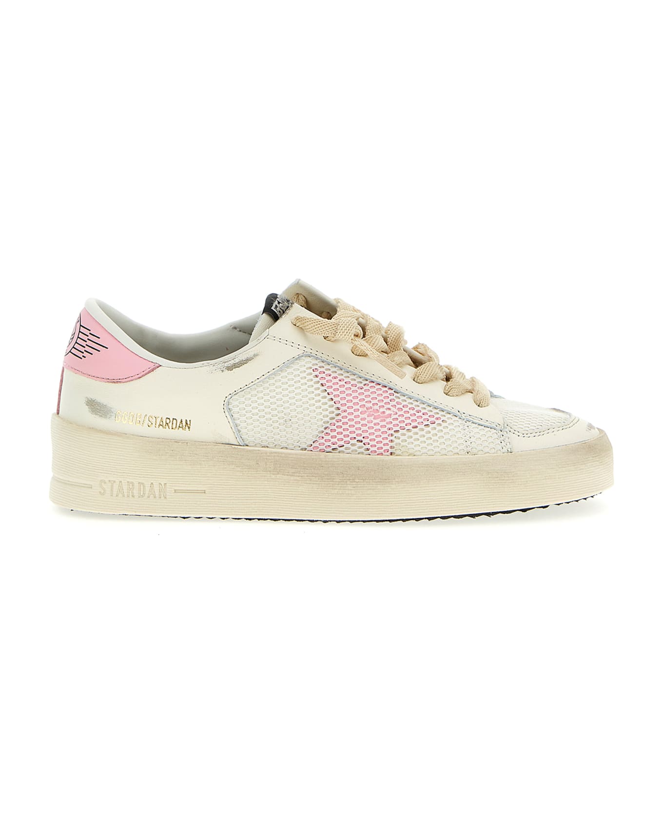 Stardan sneakers in used-effect leather with mesh details, contrasting color details, laces, and rubber sole.