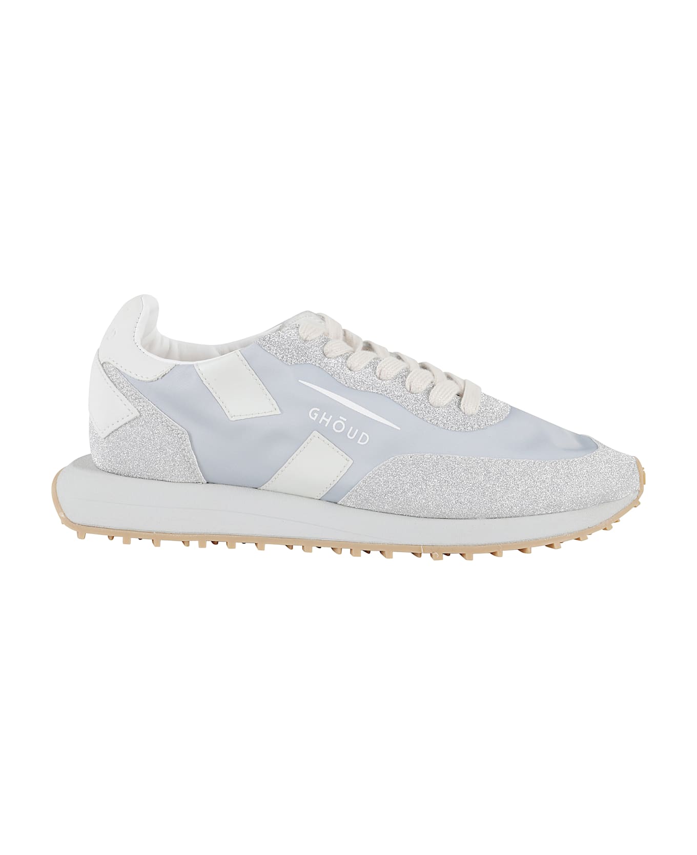 Starlight sneakers - Ghoud - Silver color - Nylon and glitter upper - Almond toe - Contrasting printed side logo - Contrasting leather heel - Cotton lace-up closure - Rubber sole