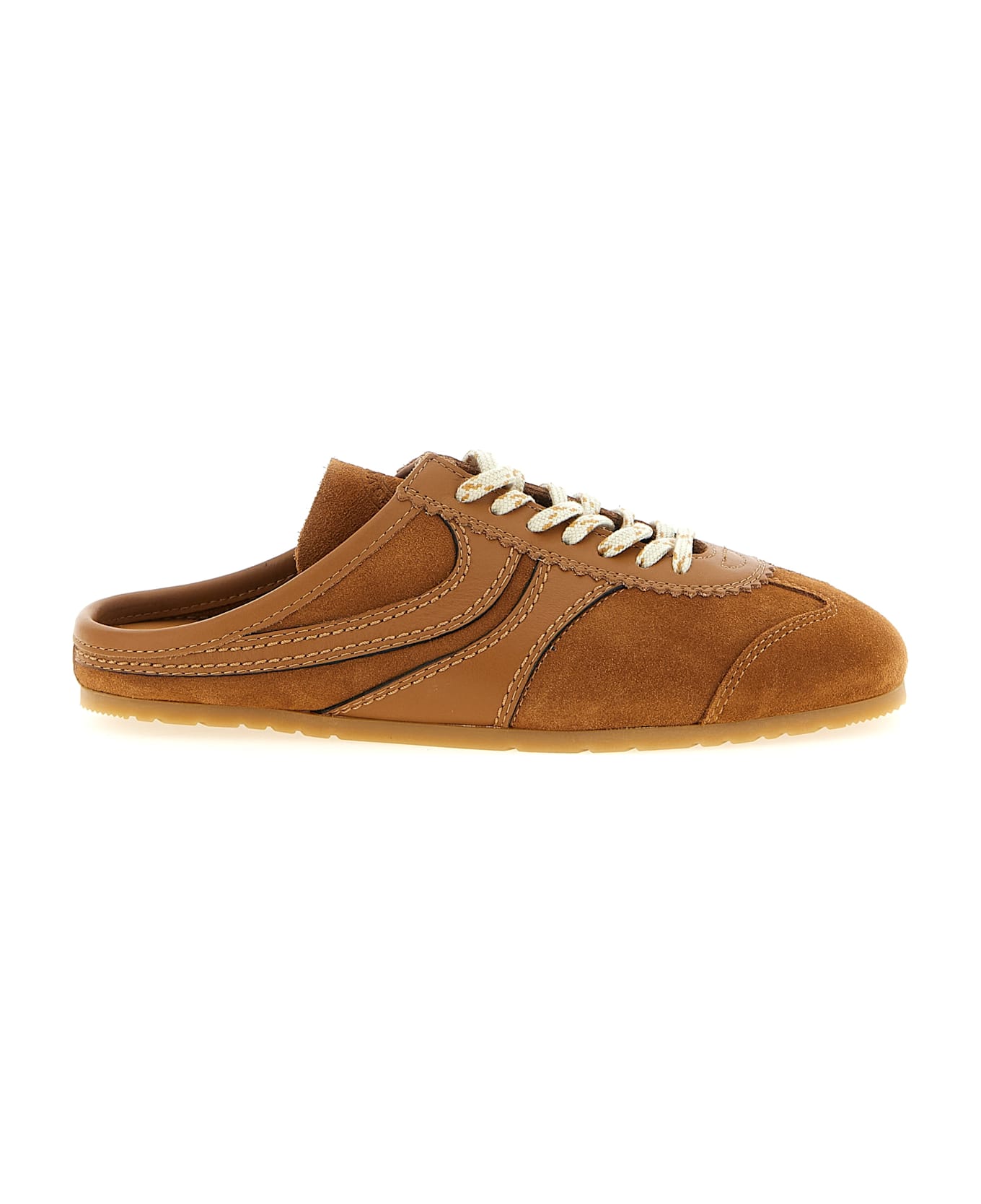 Suede Mules sneakers in suede with tone-on-tone leather details and scalloped edges, sabot-inspired design with open heel, lace-up closure, rubber sole.