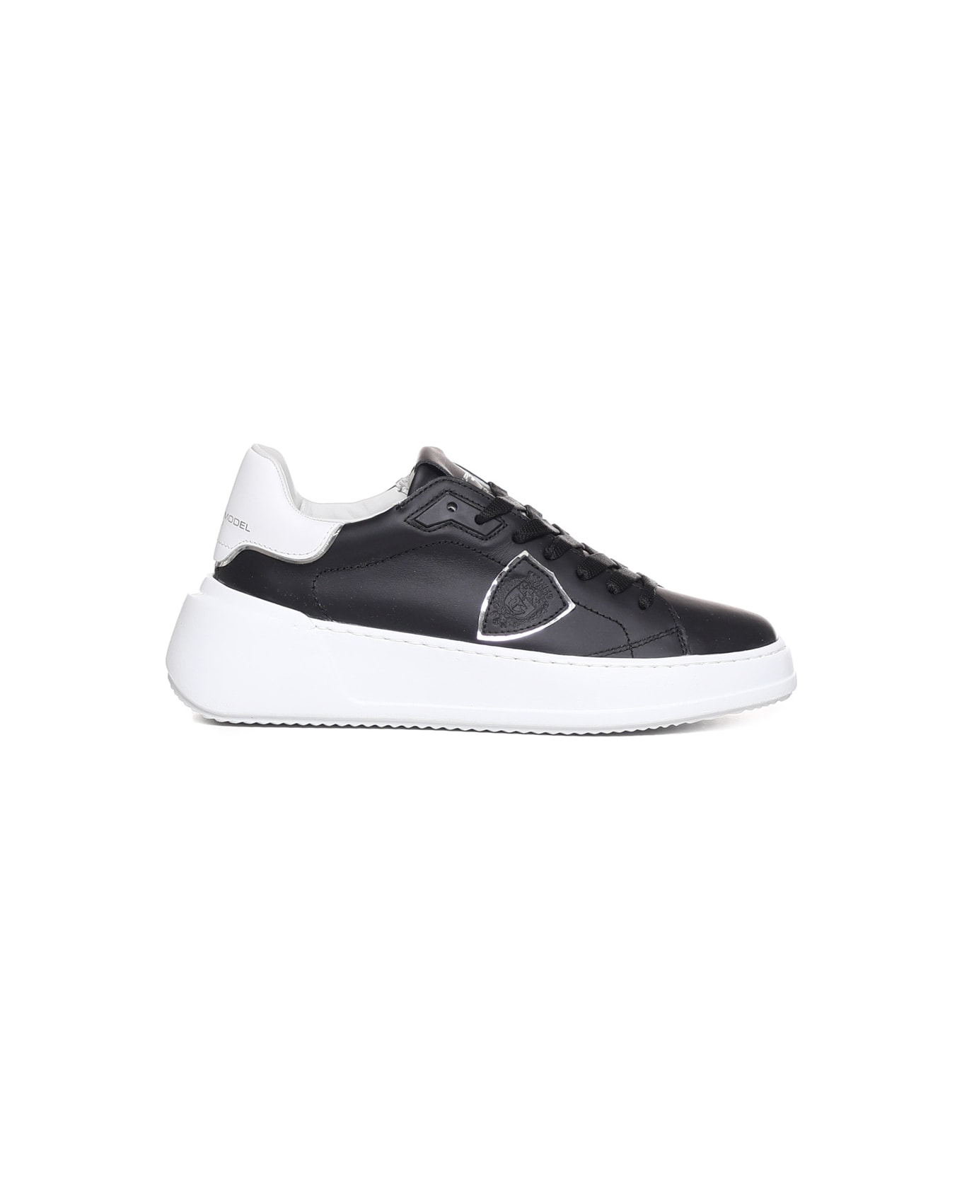 Black Temple Sneakers from Philippe Model -Side application with logo -Round toe -Front closure with laces -Application with logo on the tongue -Logo on the heel -Flat rubber sole -Colour: Black -100% Leather