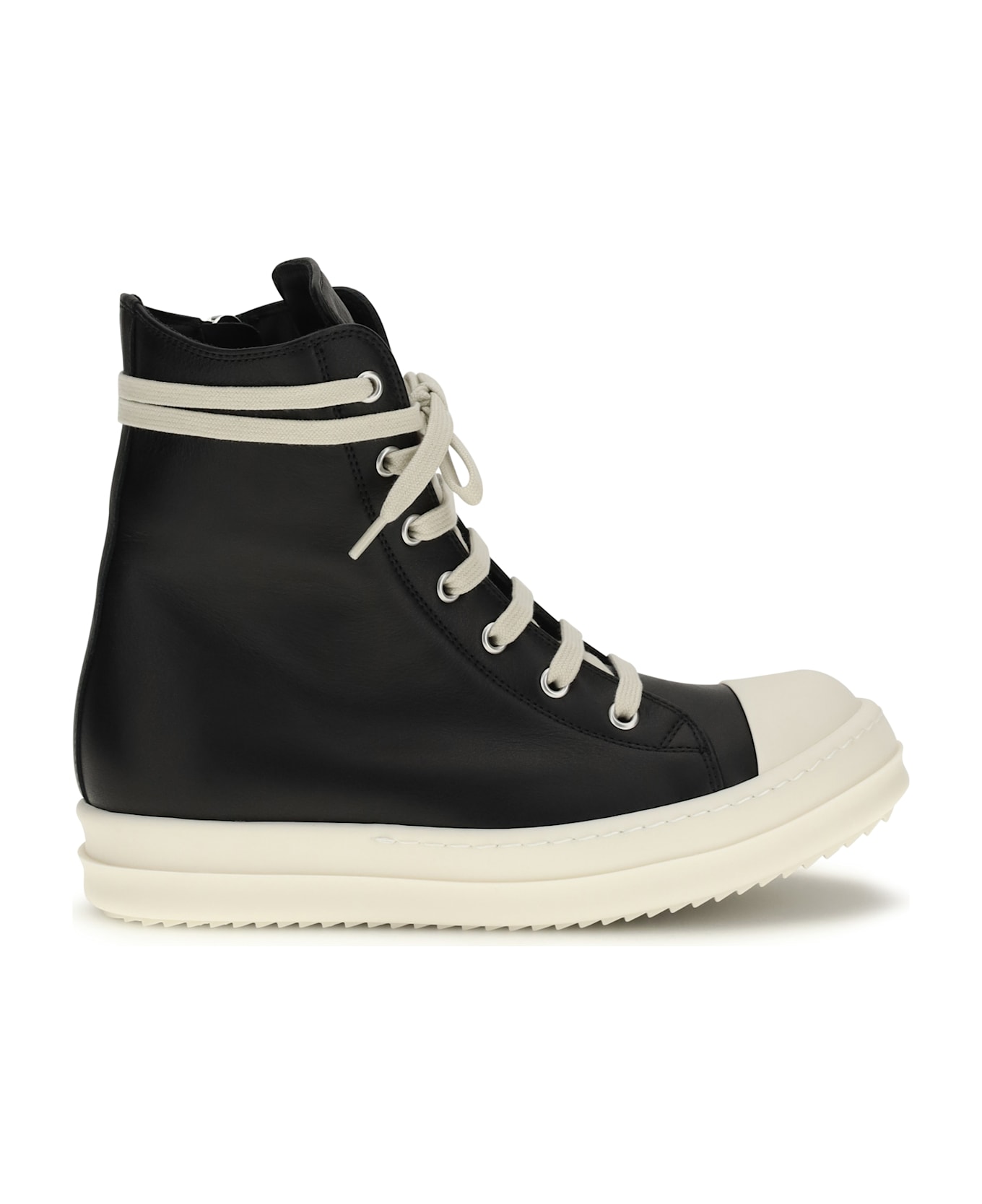 The temple sneakers by rick owens combine bold design with contemporary functionality. featuring a thermoplastic rubber sole with a serrated bumper, they offer durability and optimal grip. the seven-eyelet closure with laces, together with the internal zipper at the ankle, ensures a secure and practical fit. the reinforced toe completes the sturdy design, making these sneakers perfect for those seeking avant-garde style and comfort in a single model.
