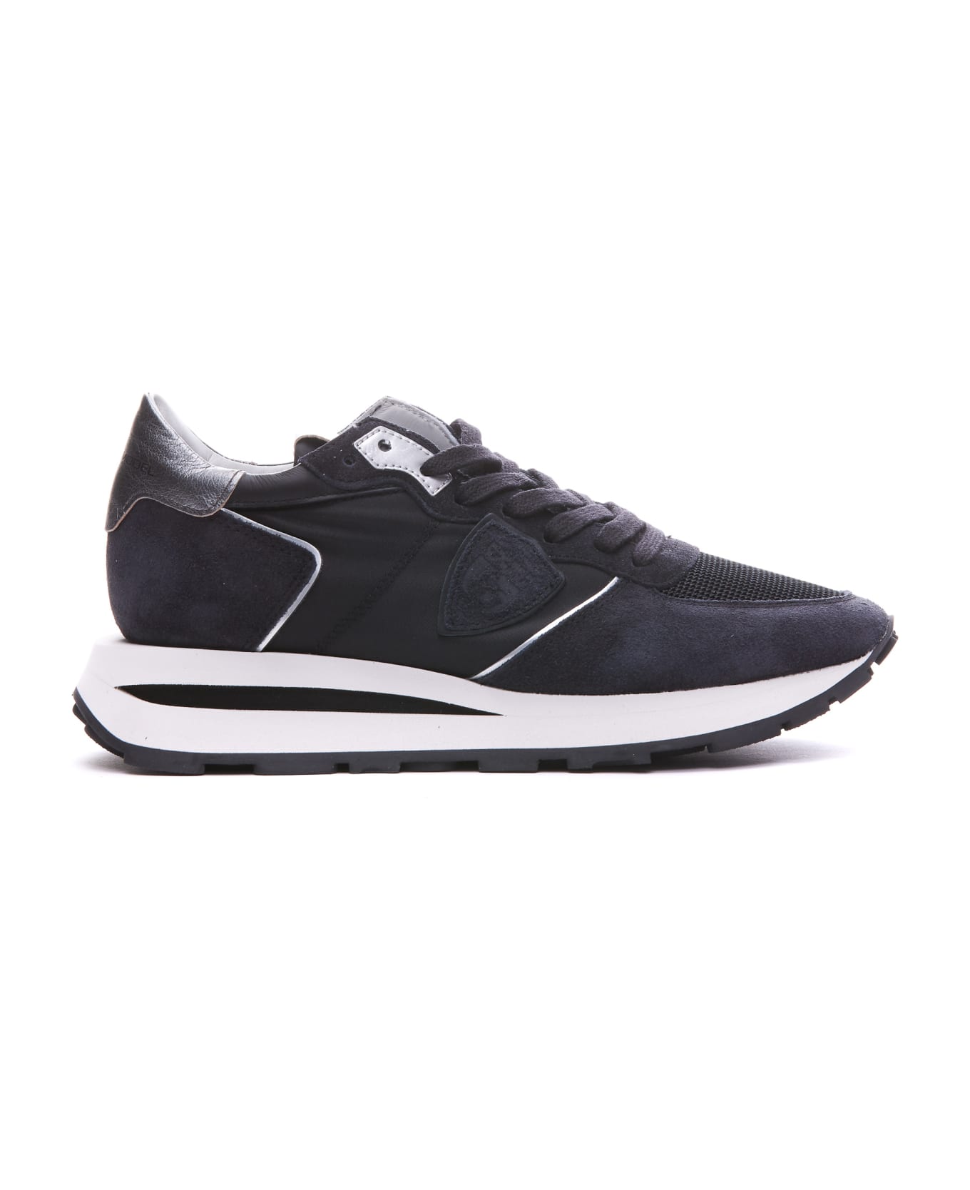 Philippe Model black Tropez Haute sneakers, suede and fabric upper, lateral patch logo, laces closure