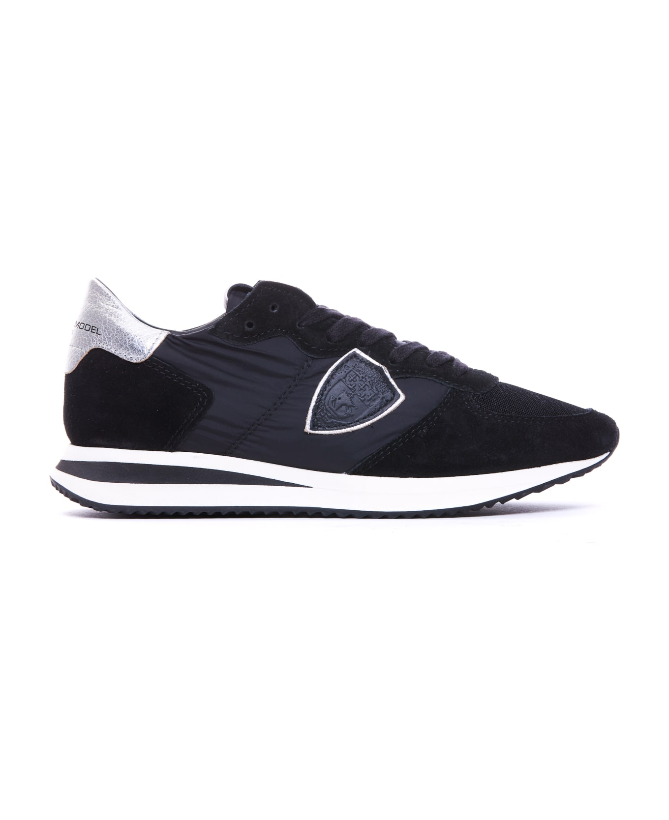 Philippe Model black Trpx sneakers, suede and fabric upper, lateral patch logo, laces closure, logo on the front and on the back