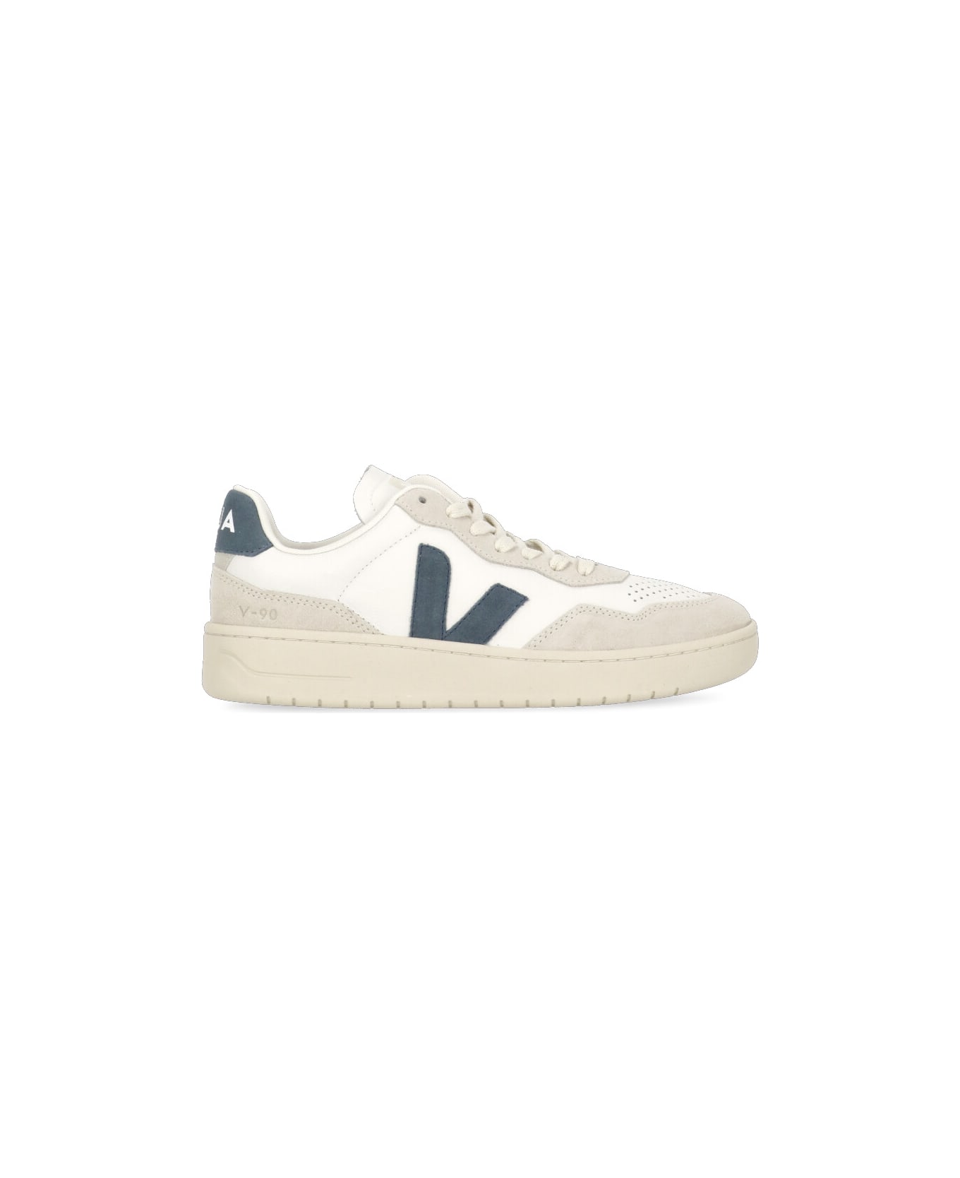 - White Veja leather sneakers for woman - Round toe with breathable details - Front laces fastening - Suede leather inserts - Contrasting colour upper heel with logo - Side contrasting colour V logo