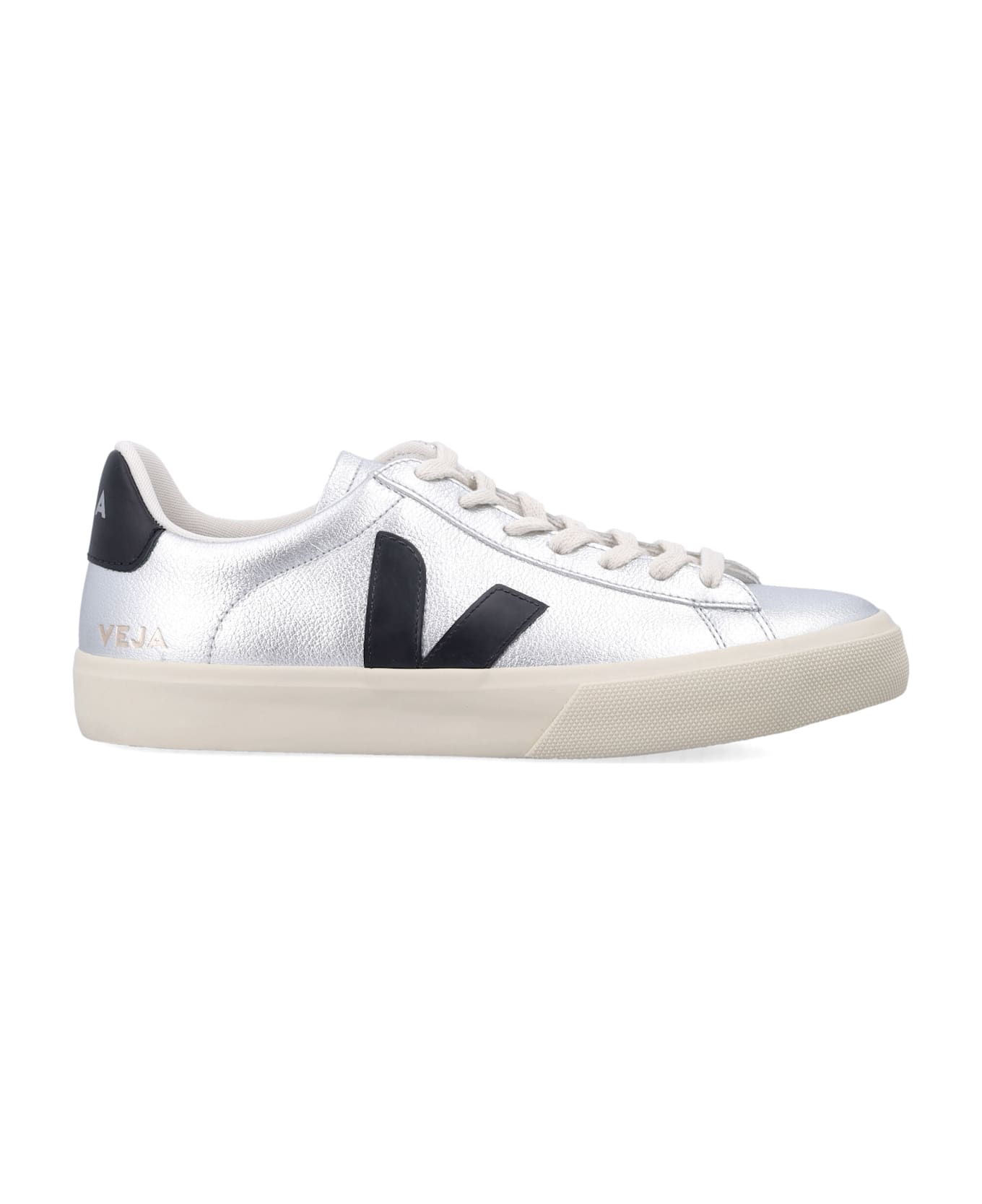 The Veja Campo Sneakers Fuse Minimalist Design With A Bold Metallic Finish. Featuring A Silver Leather Upper With Contrasting Black Logo And Heel Tab, They Balance Timeless Simplicity With A Modern Edge. A Natural Rubber Sole And Eco-conscious Construction Highlight Veja s Commitment To Sustainability, Making Them A Versatile Choice For Everyday Wear. Silver Metallic Leather Upper Black Leather Side Logo And Heel Tab Natural Rubber Sole Sustainable And Eco-friendly Model