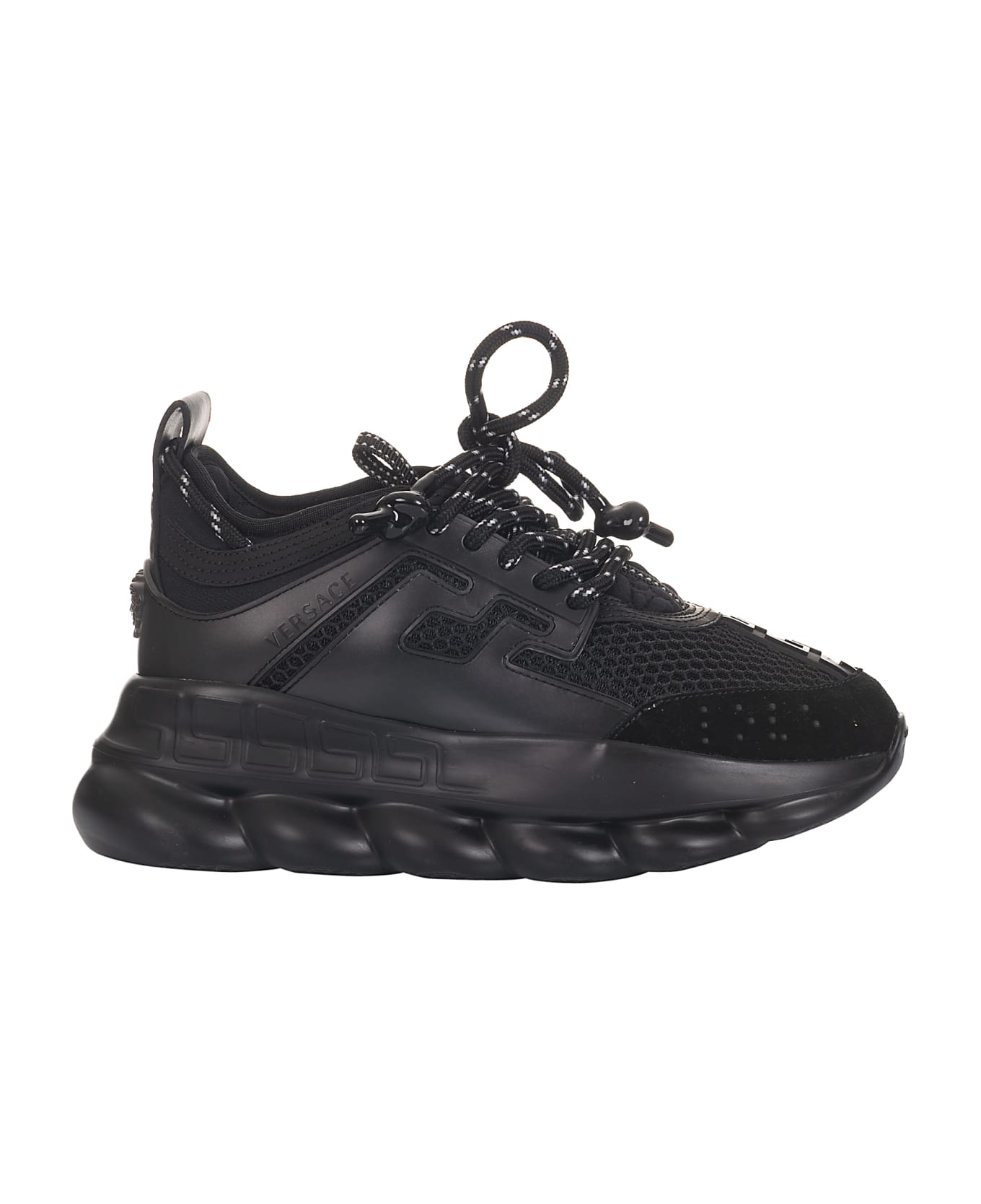 Chain Reaction Sneakers from Versace: Black Chain Reaction Sneakers with branded insole, round toe, lace up fastening and rubber sole Composition: 100% Calf Leather