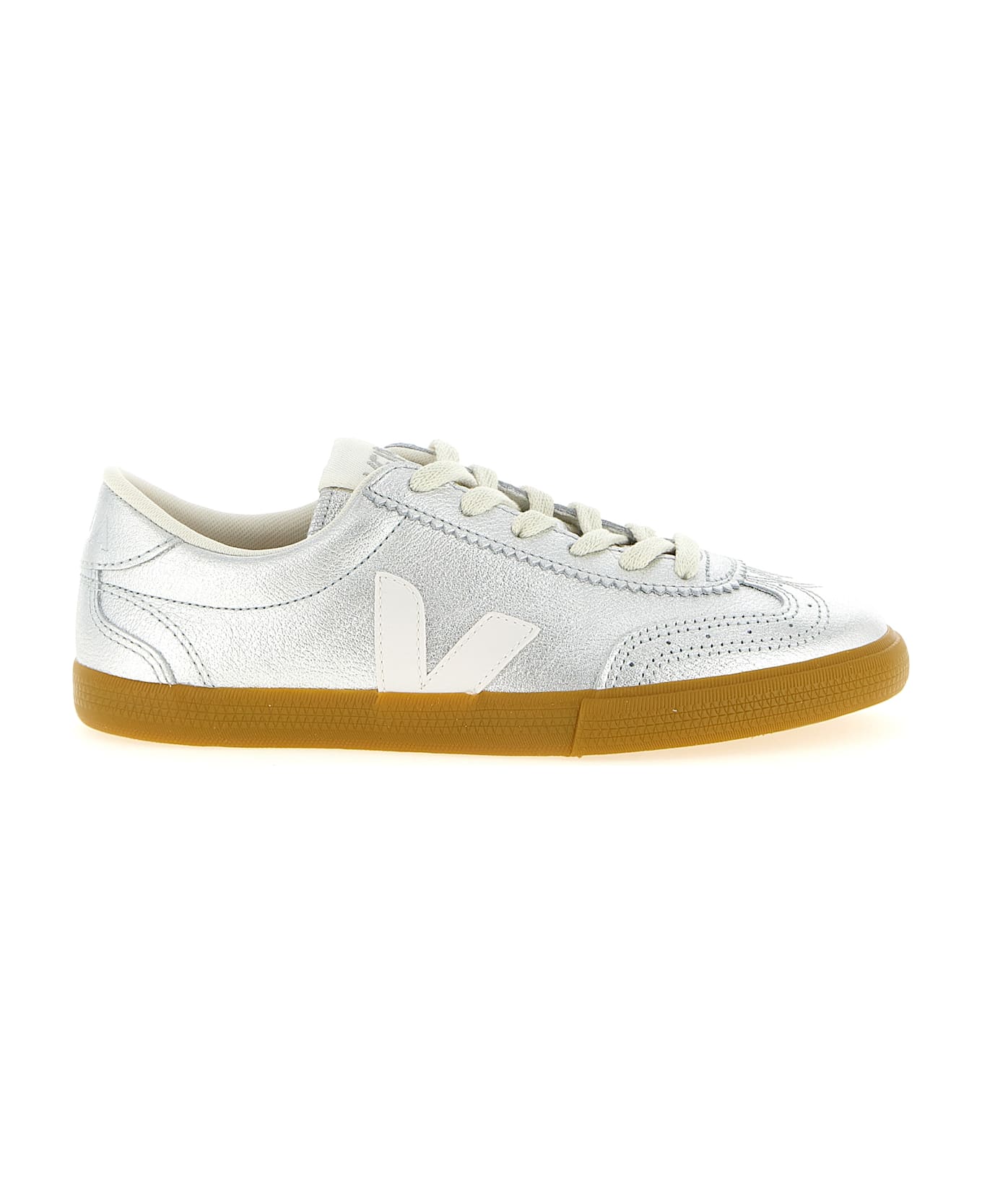 'Volley' laminated O. T. leather sneakers, tone-on-tone Amazonian rubber logo patch on the side, lace-up closure, rubber sole. SUSTAINABLE: O. T. (Organic Traced) leather comes from 100% certified organic farms in Uruguay.