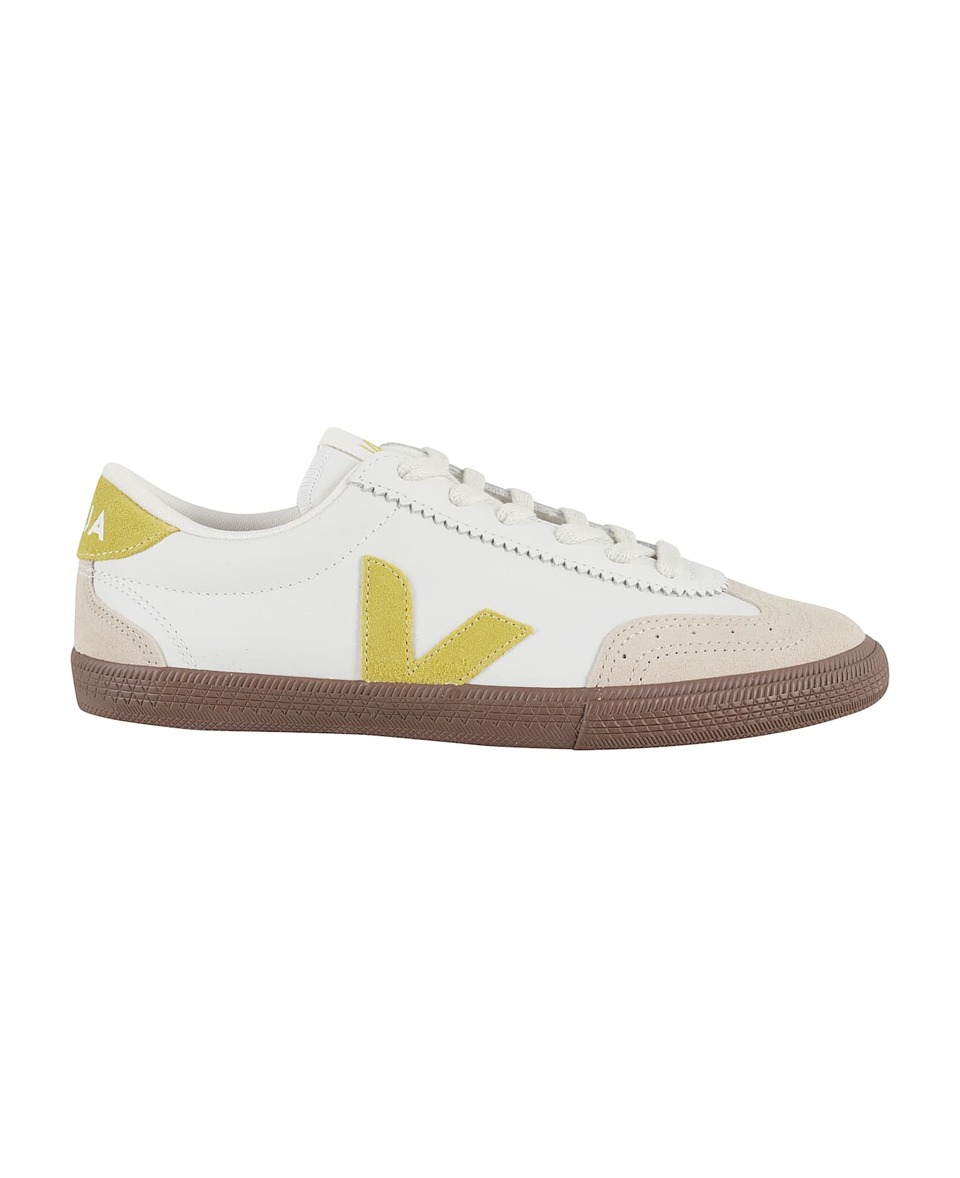 Volley sneakers - Veja - White color - Leather and suede upper - Almond toe - Embroidered logo tongue - Suede heel - Suede side logo - Cotton lace-up closure - Rubber sole.