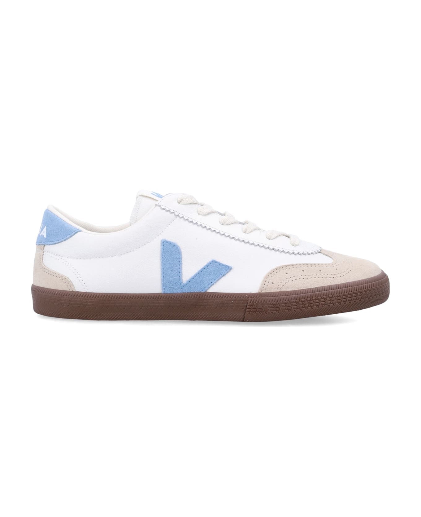 Volley Sneakers By Veja. Featuring: Organic Traced Leather Upper Round Toe Lace-up Fastening Logo Label At Tongue Contrasting V Patch And Heel Counter Rubber Sole