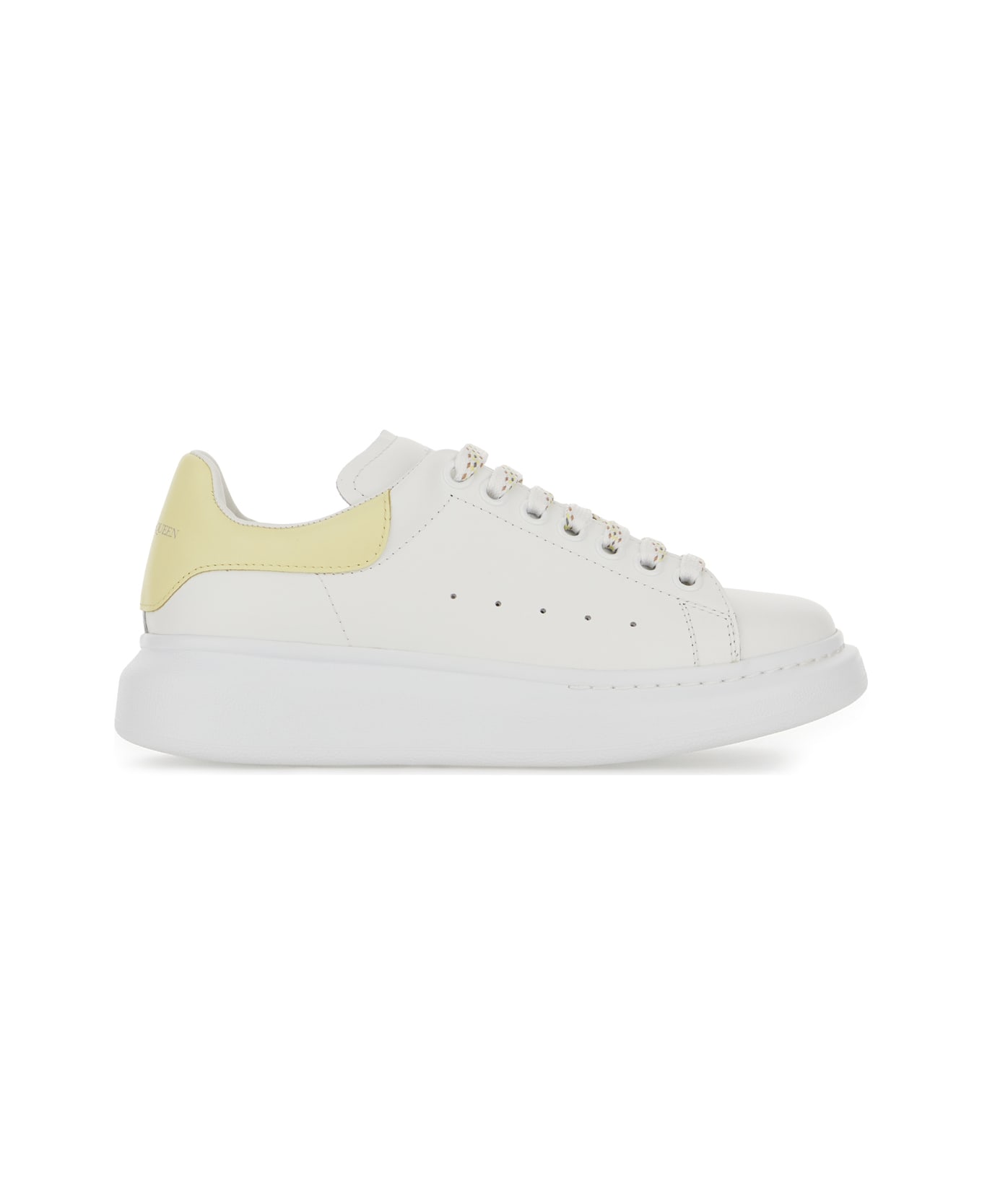 White Leather Sneakers With Pastel Yellow Leather Heel