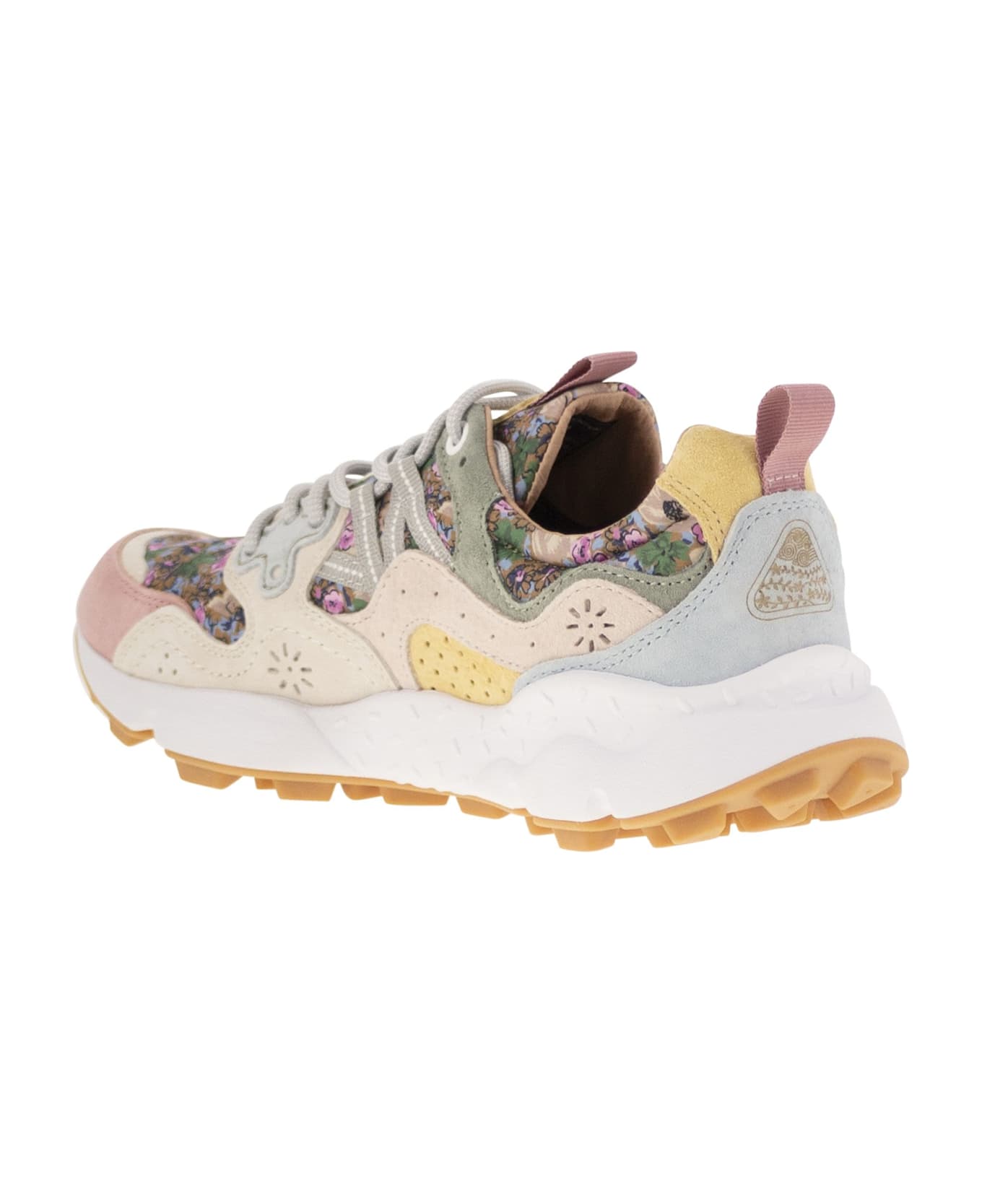 Inspired by the sporty, outdoor world, the Yamano trainers mix active details with a cool aesthetic that is also perfect for the city. The technical fabric upper features suede details with the characteristic overlapping construction, trekking laces and a floral shaped eyelet. The sole is made of ultra-light rubber, with a coloured spoiler under the heel and notched tread. The antibacterial natural cork insole ensures foot well-being and all-day comfort. - Cork insole - Lace-up closure - Ultralight rubber DESIGNER ID: 201781740 1N99