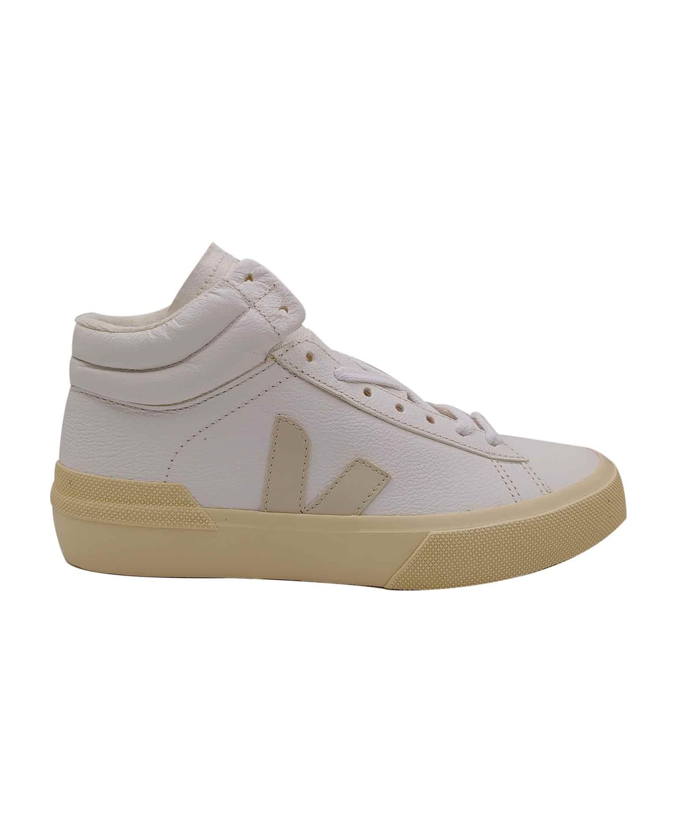 Taking inspiration from the V-10 low-top version, VEJA presents these V-15 high-top sneakers. Crafted from signature Chromefree leather, they feature a perforated toebox and are completed with contrasting brand motifs on the sides.