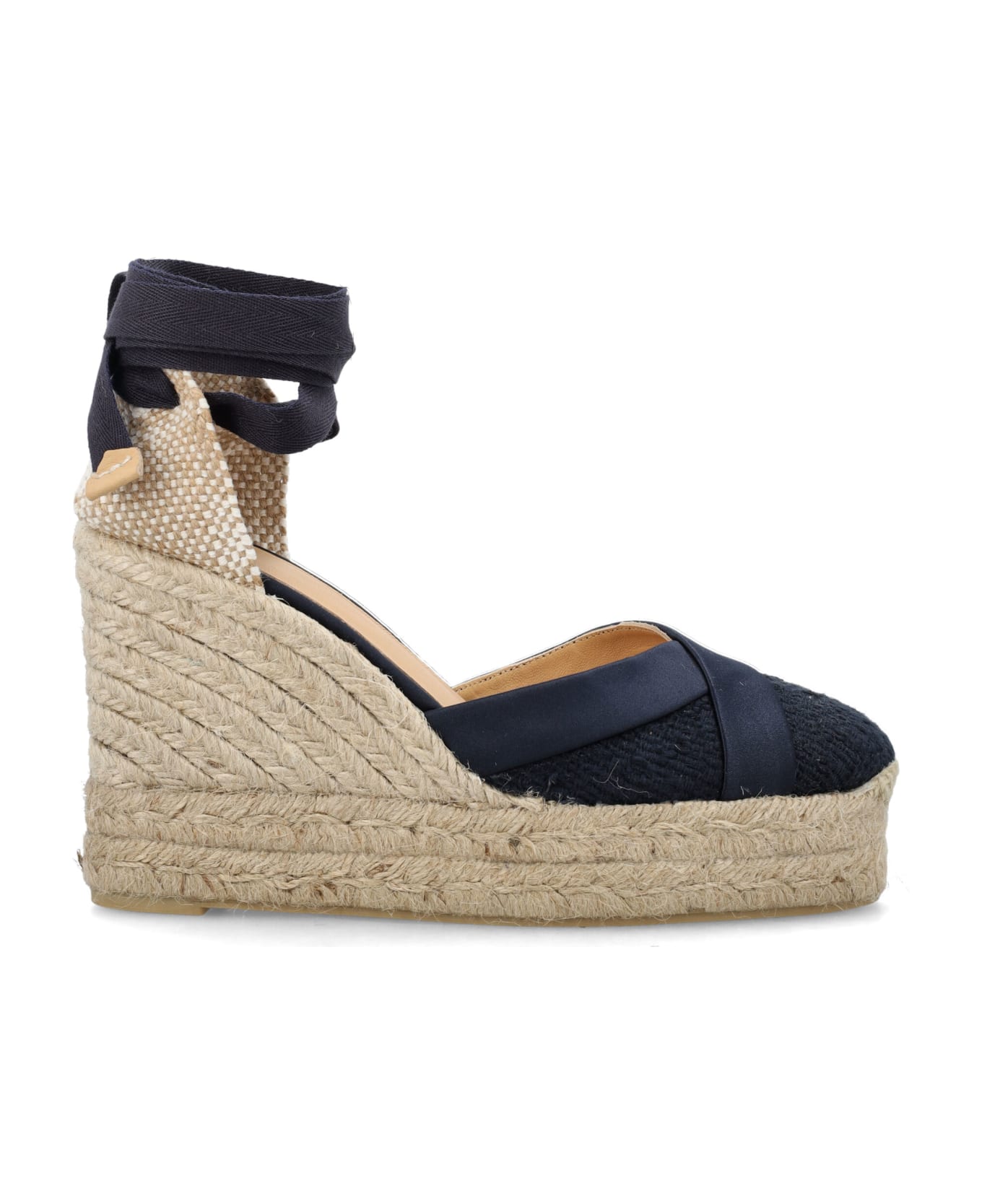 Callas Wedge Espadrilles By Castañer. Featuring: Textile Upper Tie-fastening Thin Ankle Strap Closed Round Toe Wedge Heel Braided Raffia Platform Wedge: 10 Cm