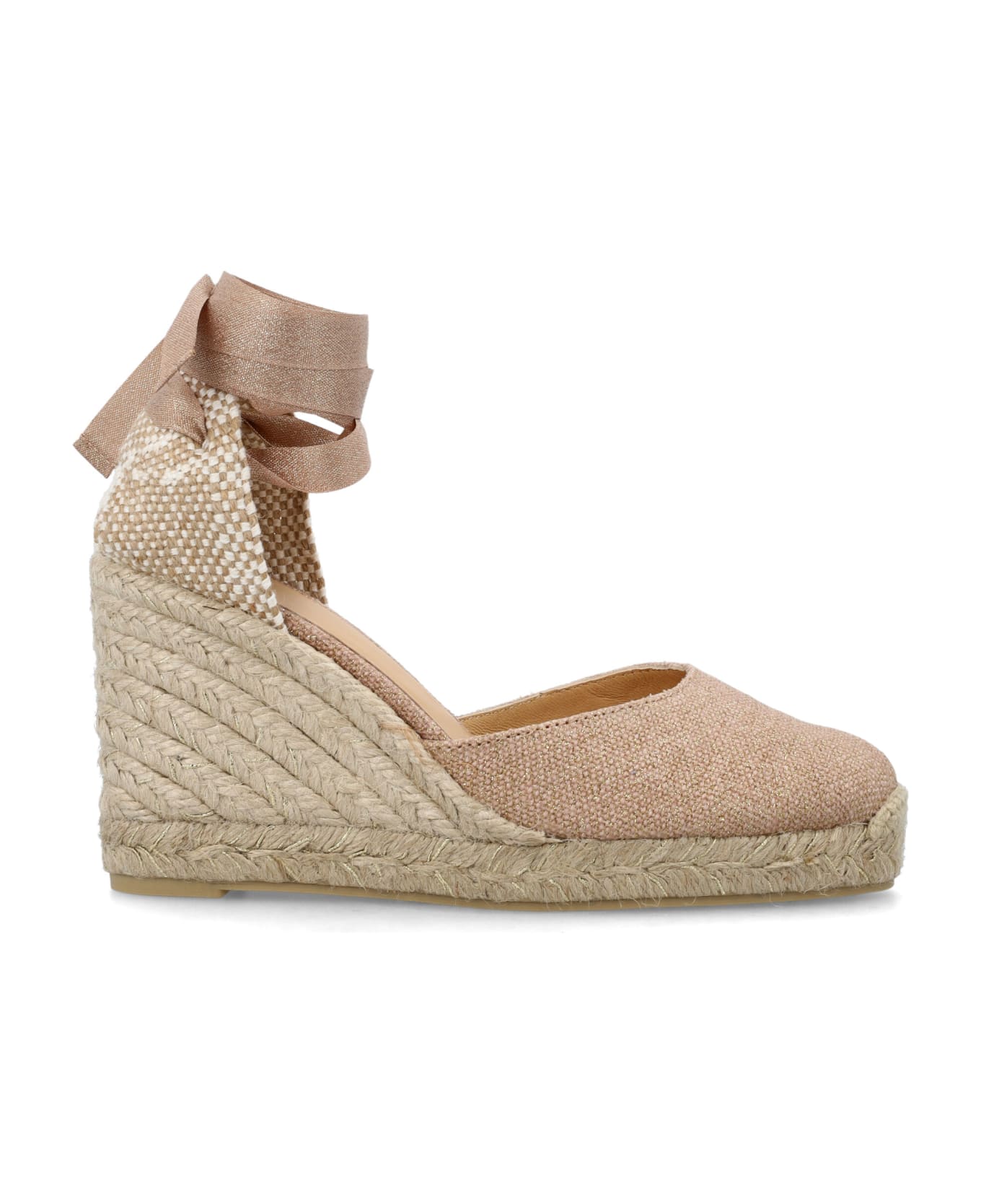 Cotton Carina Lurex Espadrilles By Castañer. Featuring: Wedge Design Braided Fabric At Heel Lace-up Fastening Metallic Effect Rounded Tip Vulcanized Sole Of Rubber And Jute Heel: 8cm