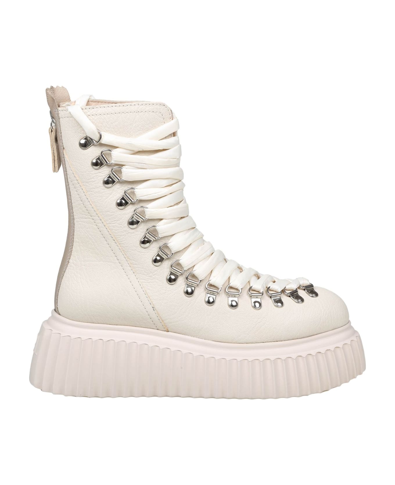 Leather ankle boot color ice and pink gold colored metal eyelets back zip rubber sole color pink sole height 6cm leather interior composition 100% goat leather made in italy