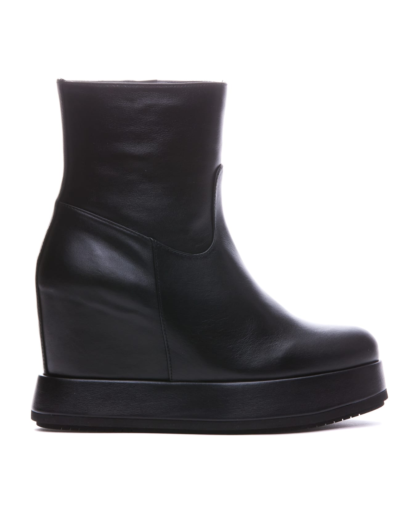 Paloma Barcelo' black Ivey boots, leather upper, lateral zip closure, round toe, inner heel detail